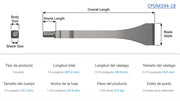 Cincel angular para escareador o escalador neumático, con hoja de 1-3/8” y longitud total de 7 pulgadas.