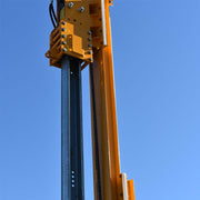 Incorpora un potente martillo hidráulico con energía de impacto de 800 ft-lb (1085 joules), lo que permite una penetración eficiente y segura incluso en terrenos exigentes. El mástil ajustable, junto con el sistema de guiado superior e inferior, asegura una conducción estable, recta y controlada del pilote durante todo el proceso.