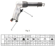Descripción del Producto: El martillo neumático CP714 es una herramienta industrial de alto impacto, diseñada para realizar trabajos extremadamente pesados con eficacia y precisión. Equipado con un gatillo de acción positiva y un regulador de velocidad, este martillo permite un control óptimo en tareas de remache y cincelado. Su mango ergonómico asegura la comodidad del operario durante su uso prolongado, haciendo que sea ideal para aplicaciones en talleres de carrocería, incluidos trabajos de escape, bastidor y carrocería.