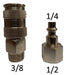 - Juego de cople rápido macho 3/8" x 1/4" NPT y espiga hembra 1/2" x 1/4" NPT